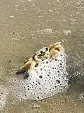 - ↑ Fielder, D.R. 1970. The feeding behaviour of the sand crab Scopimera inflata (Decapoda, Ocypodidae). Journal of Zoology, London 160:35–49.