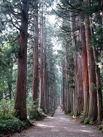 Há registo do caso de um daimyō (senhor feudal do antigo Japão) que era demasiado pobre para oferecer uma lanterna de pedra para o funeral do shogun Tokugawa Ieyasu (1543–1616) em Nikkō Tōshō-gū, mas que solicitou que em vez dessa oferenda lhe fosse permitido plantar uma alameda de sugi, para que "futuros visitantes possam ser protegidos do calor do sol". A oferenda foi aceite e a alameda, que ainda existe, tem mais de 65 km de comprimento, sem igual em grandeza.[7]