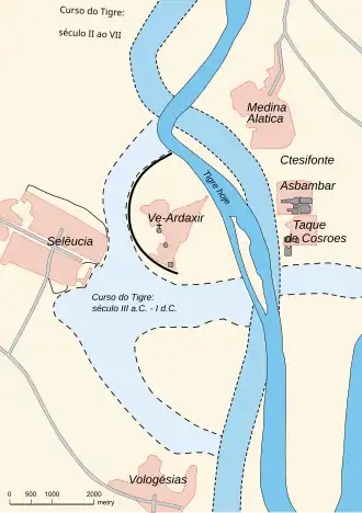 - ↑ «Ctesiphon, Baghdad, Iraq». www.traveljournals.net (em inglês). Arquivado do original em 5 de maio de 2005