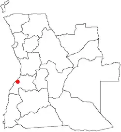 Situa-se a 146 km da cidade de Benguela e a 200 km da cidade do Huambo, sendo um centro comunicador entre o planalto central e o litoral angolano.