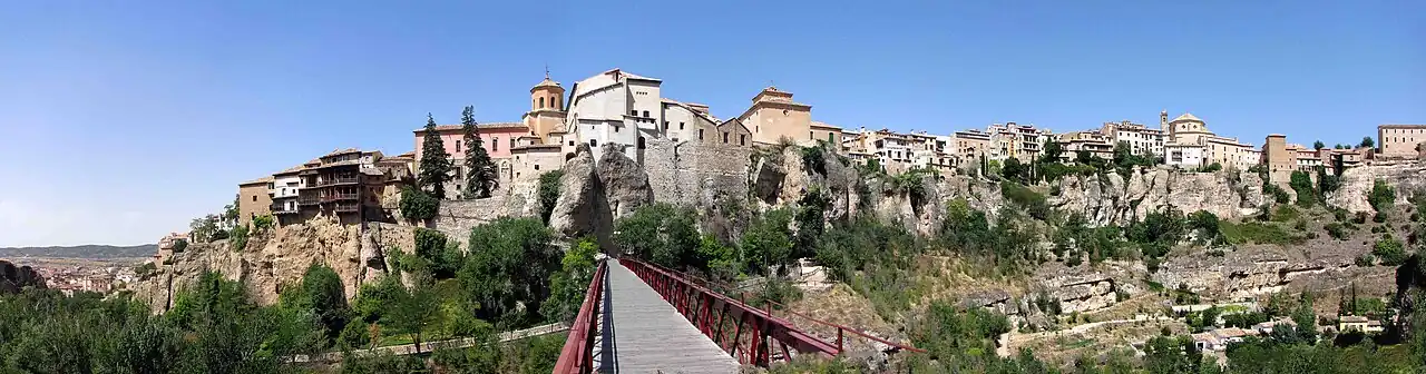 ![]() ![]() ![]() ![]() ![]() De cima para baixo e da esquerda para a direita: 1) "Casas penduradas" [es] (casas colgadas); 2) Ayuntamiento; 3) Vista geral; 4) Catedral; 5) Vale do Huécar | |