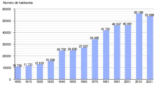 Em 2009 o município tinha 55 866 habitantes, 27 006 (48,3%) do sexo masculino e 28 860 (51,7%) do sexo feminino, a esmagadora maioria deles a residir na cidade.[34]
