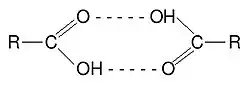 Os ácidos carboxílicos formam dímeros por formação de pontes de hidrogénio entre o hidrogénio ácido e o oxigénio carbonílico em condições anidras. Por exemplo, o ácido acético forma um dímero em fase de gás, no qual as unidades monoméricas se unem por pontes de hidrogénio. Em condições especiais, a maioria das moléculas que contêm grupos OH formam dímeros (por exemplo o dímero de água).