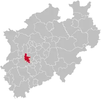 | Localização de Düsseldorf no estado de Renânia do Norte-Vestfália | |