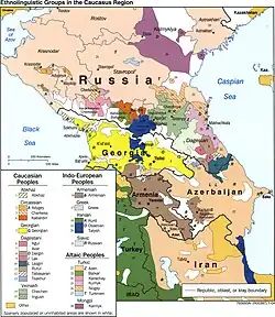 - ↑ «Dagestan». www.britannica.com. Most inhabitants speak Caucasian and Turkic languages. In terms of religion, however, Dagestan is homogeneously Muslim. Encyclopædia Britannica (Online edition)