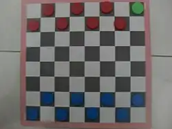 Usa o tabuleiro de oito por oito casas. Cada jogador tem dezesseis peças e as coloca inicialmente na segunda e terceira fileiras mais próximas de si.