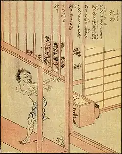 ![]() Capa do primeiro volume japonês de Death Note mostrando Ryuk e o protagonista Light Yagami. | |