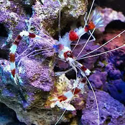 Alguns camarões de diversos táxons, conhecidos coletivamente como camarões limpadores, removem ectoparasitas e outros materiais indesejáveis das superfícies de peixes de recifes. O camarão pode subir em um peixe e até mesmo entrar na boca e na câmara branquial à procura de parasitas, os quais serão removidos e comidos.[3]