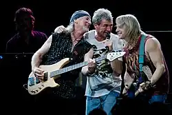 ![]() Da esquerda para a direita: Ian Paice, Roger Glover, Ian Gillan, Steve Morse e Don Airey em concerto ao vivo em 2013 | |