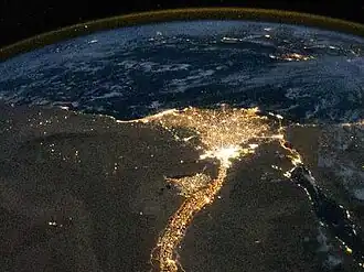O delta do Nilo é a região onde o rio Nilo se divide em vários braços para desaguar no mar Mediterrâneo, no norte do Egito. É uma planície com um forma triangular (de onde provém o termo "delta"), com 160 km de comprimento e 250 km de largura.