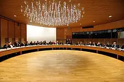 A democracia deliberativa é baseada na noção de que, para uma decisão democrática ser legítima, ela deve ser precedida por uma deliberação autêntica, não meramente pela agregação de preferências que ocorre na votação. A deliberação autêntica é a deliberação entre os tomadores de decisão que está livre de distorções de poder político desigual, como o poder que um tomador de decisão obteve por meio da riqueza econômica ou do apoio de grupos de interesse.[144] Se os tomadores de decisão não conseguirem chegar a um consenso após deliberar autenticamente sobre uma proposta, eles votam usando uma forma de regra majoritária. As assembleias de cidadãos são consideradas por muitos acadêmicos como exemplos práticos de democracia deliberativa,[145][146][147] sendo que um relatório da OCDE as identificou como um mecanismo cada vez mais popular para envolver os cidadãos na tomada de decisões governamentais.[148]