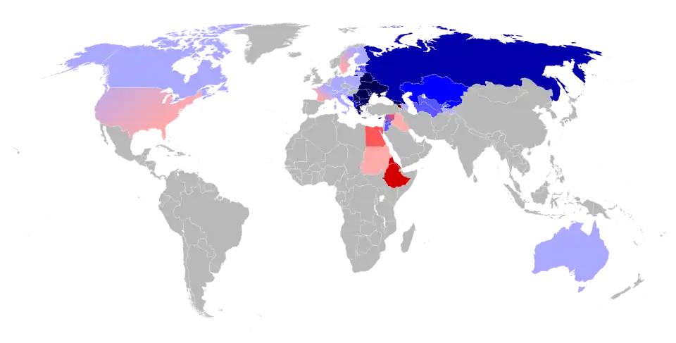 - ↑ «Orthodox Christianity in the 21st Century». Pew Research Center's Religion & Public Life Project. 8 de novembro de 2017