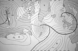 Mapa de análise do tempo à superfície com as frentes meteorológicas a 5 de Junho.