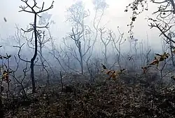 Em agosto de 2019 uma onda de incêndios na Amazônia, em boa parte provocada e anunciada de antemão como um manifesto de apoio de fazendeiros às políticas de Bolsonaro,[252][253] causou uma nuvem de fumaça que obscureceu a cidade de São Paulo e reduziu a visibilidade para a aviação em várias regiões.[254] A depredação da floresta despertou atenção mundial, com inúmeras reações de representantes de governos, cientistas e movimentos do ativismo ambiental. No Brasil panelaços e uma série de manifestações de rua protestaram contra a continuidade de uma política que chamam imprevidente e predatória e pediram ao governo ações efetivas pela preservação do ambiente e da Amazônia em particular.[255][256][257] O ex-ministro das relações exteriores Ernesto Araújo afirmou que o Brasil estava sendo alvo de uma "campanha internacional feroz" sobre as queimadas da Amazônia e que a crise ambiental seria uma "mentira da esquerda" para esconder que o presidente Jair Bolsonaro estava "reerguendo o Brasil".[258]