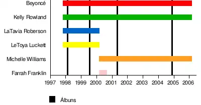 | Ex-integrantes | Beyoncé Farrah Franklin Kelly Rowland LaTavia Roberson LeToya Luckett Michelle Williams |