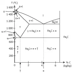 Um diagrama de fases complexas de grande importância tecnológica é o do sistema ferro-carbono de teor de carbono inferior a 7% (ver aço).