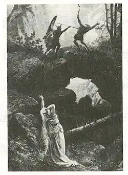 Após fugir da residência de Hunding, o casal Siegmund e Sieglinde chega à passagem da montanha, onde Sieglinde desaba exausta e sentindo-se culpada, indigna do amor de Siegmund. Ele a conforta, afirmando que se vingará de Hunding. Ela alega começar a ouvir a perseguição de seu marido, e delira, já antevendo o duelo.