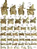 - ↑ Tykoski, R.S. (2005). Anatomy, ontogeny, and phylogeny of coelophysoid theropods (Tese). University of Texas. pp. 1–232 – via UT Libraries: Electronic Theses and Dissertations