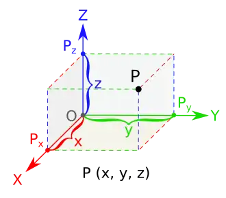 Na física e na matemática, a dimensão de um espaço matemático (ou objeto) é informalmente definida como o número mínimo de coordenadas necessárias para especificar qualquer ponto dentro dela.[1][2][nota 1] Assim, uma reta tem uma dimensão de um (1) porque apenas uma coordenada é necessária para especificar um ponto nela – por exemplo, o ponto no 5 em uma reta numérica. Uma superfície como um plano ou a superfície de um cilindro ou esfera tem uma dimensão de dois porque duas coordenadas são necessárias para especificar um ponto nela – por exemplo, uma latitude e uma longitude são necessárias para localizar um ponto na superfície de uma esfera. O interior de um cubo, um cilindro ou uma esfera é tridimensional porque são necessárias três coordenadas para localizar um ponto dentro desses espaços.