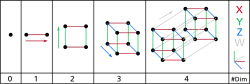 As primeiras quatro dimensões espaciais, representadas em uma figura bidimensional.