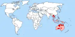 Só é possível dar uma descrição grosseira da área de distribuição do dingo e da densidade populacional correspondente. Dar uma avaliação exata da distribuição dos dingos, e outros cães domésticos, é difícil, uma vez que a extensão exata do cruzamento entre os dois não é conhecida. A seguinte informação sobre a distribuição da espécie aplica-se a cães classificados como dingos com base na cor do pelo, na forma do corpo e no ciclo de reprodução. Portanto, os mapas que ilustram sua ocorrência podem não estar exatamente precisos.