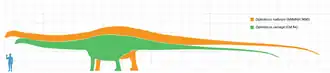 Diplodocus é um gênero de dinossauro saurópode herbívoro e quadrúpede que viveu durante o período Jurássico há aproximadamente 154 a 152 milhões de anos.[1] O seu nome significa dupla alavanca pela disposição dos ossos da parte posterior de cauda com mais de 15 metros, mais longa do que um terópode de grande porte. Sua cauda possivelmente era usada para defesa, funcionando como um chicote. O Diplodocus media em torno de 27 e 32 metros de comprimento, dependendo da espécie,[2] e pesava cerca de 15 toneladas. É um dos dinossauros mais conhecidos.
