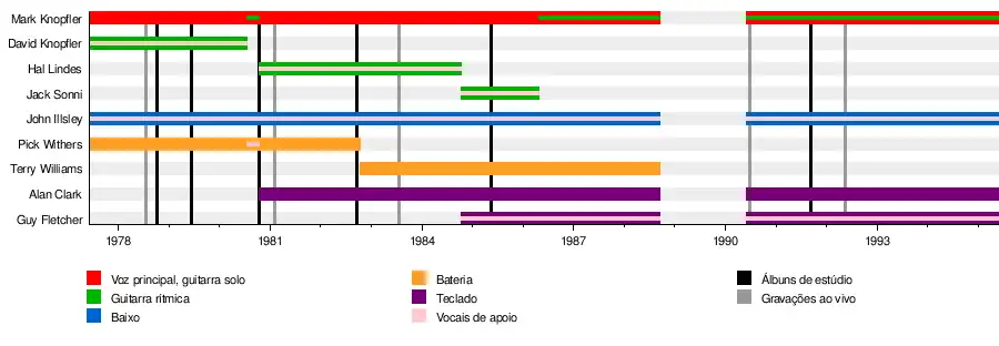 - Mark Knopfler – vocal, guitarra solo e guitarra rítmica (1977–1995)