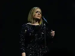Em outubro de 2012, a vocalista lançou "Skyfall" como single para a trilha sonora do filme homônimo. A canção atingiu a segunda posição no UK Singles Chart[5] e a oitava na Billboard Hot 100,[11] conquistando no ano posterior o Golden Globe Award[33] e o Academy Award de "Best Original Song"[34] e em 2014, o Grammy de "Best Song Written for Visual Media".[12] O seu terceiro projeto de estúdio, 25, foi introduzido em novembro de 2015 e quebrou os recordes de vendas na primeira semana tanto em solo britânico,[35] como americano.[36] O disco foi certificado doze vezes platina pela BPI[8] e onze vezes platina pela RIAA,[9] teve vinte e dois milhões de cópias faturadas[37] e conquistou o Grammy de "Album of the Year".[12] Entre os singles, destacou-se o primeiro, "Hello". A obra foi a primeira a ter mais de um milhão de unidades digitais comercializadas em uma semana nos Estados Unidos, debutando no topo da Billboard Hot 100.[38] Adele vendeu mais de 100 milhões de álbuns e singles mundialmente, fazendo dela uma recordista de vendas no mundo.[39][40]