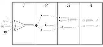 - Le second, de diviser chacune des difficultés que j'examinerais, en autant de parcelles qu'il se pourroit, et qu'il seroit requis pour les mieux résoudre. Le troisième, de conduire par ordre mes pensées, en commençant par les objets les plus simples et les plus aisés à connoître, pour monter peu à peu comme par degrés jusques à la connoissance des plus composés, et supposant même de l'ordre entre ceux qui ne se précèdent point naturellement les uns les autres.