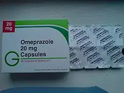 - ↑ Talley NJ, Meineche-Schmidt V, Paré P; et al. (1998). «Efficacy of omeprazole in functional dyspepsia: double-blind, randomized, placebo-controlled trials (the Bond and Opera studies)». Aliment. Pharmacol. Ther. 12 (11): 1055–65. PMID 9845395. doi:10.1046/j.1365-2036.1998.00410.x[ligação inativa]