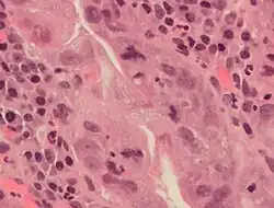 - Células binucleadas (é mais raro acontecer, mas deve-se a mitoses muito frequentes aumentando a hipótese de haverem erros na replicação celular)