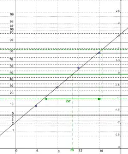 • A largura à meia altura (largura da curva à metade da altura total) fornece um valor da amplitude da distribuição. Esta largura à meia altura da distribuição normal é proporcional ao desvio padrão . O fator 2 vem da propriedade de simetria da distribuição normal.[44]