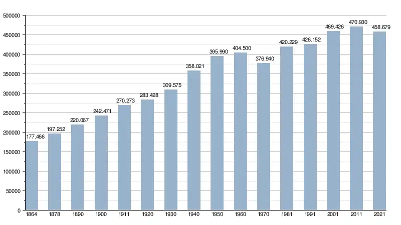 | 1864 | 1878 | 1890 | 1900 | 1911 | 1920 | 1930 | 1940 | 1950 | 1960 | 1970 | 1981 | 1991 | 2001 | 2011 | 2021 | 2023 |