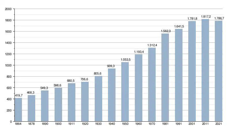 | 1864 | 1878 | 1890 | 1900 | 1911 | 1920 | 1930 | 1940 | 1950 | 1960 | 1970 | 1981 | 1991 | 2001 | 2011 | 2021 |