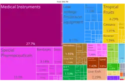 Principais produtos de exportação de Dominica em 2019 (em inglês).