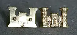 MacArthur foi engenheiro durante os primeiros 14 anos de sua carreira militar. Ele recebeu esses distintivos dourados do castelo como presente após a formatura. Ele carregou esses distintivos consigo por mais de 40 anos e em 1945 os deu ao major-general Leif J. Sverdrup, a quem ele considerou mais merecedor de usá-los. Sverdrup os entregou ao Chefe de Engenheiros em 1975. Desde então, todos os chefes de engenheiros usaram os distintivos de MacArthur.
