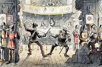 Em inglês (como era o caso análogo em muitas outras línguas europeias), a palavra play (peça) ou game (traduzindo do anglo-saxão pleġan ou do latim ludus) era o termo padrão para dramas até a época de William Shakespeare — assim como seu criador era um play-maker (criador de peças) em vez de um dramaturgo e o edifício era uma play-house (casa teatral) em vez de um teatro.[3]