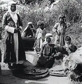 Família drusa fazendo pão na Palestina em 1920