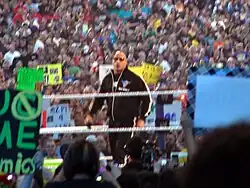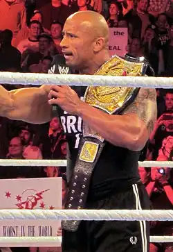 Dwayne Douglas Johnson (Hayward, 2 de maio de 1972), também conhecido pelo seu nome no ringue The Rock, é um ator e ex-lutador profissional americano. Amplamente considerado um dos maiores lutadores profissionais de todos os tempos,[7][8] Johnson foi essencial para o desenvolvimento e sucesso da World Wrestling Federation (WWF/E) durante a Attitude Era. Ele lutou pela WWF em tempo integral por oito anos antes de seguir a carreira de ator. Seus filmes arrecadaram mais de $14,9 bilhões em todo o mundo, tornando-o um dos atores de maior bilheteria e mais bem pagos do mundo.[9][10][11][12] Ele é co-proprietário da United Football League, membro do conselho de administração da TKO Group Holdings — a empresa-mãe do UFC e da WWE[13][14][15] — e cofundador da Seven Bucks Productions.
