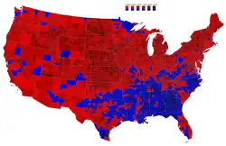 O mapa da eleição de 1952. Em vermelho, os condados que votaram por Eisenhower. Em azul, os condados que votaram por Adlai Stevenson, candidato perdedor.