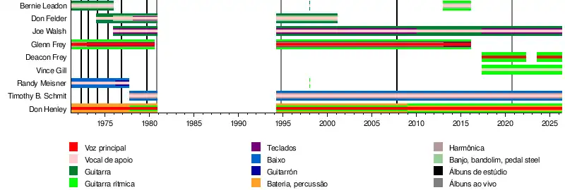 | Ex-integrantes | Bernie Leadon Randy Meisner Don Felder Glenn Frey |