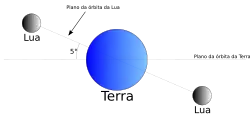 Inclinação do plano da órbita lunar em relação ao plano da órbita terrestre.