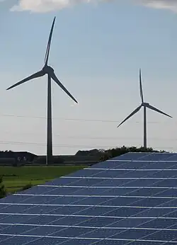 Nas energias renováveis, em 2020, a Alemanha era o 3º maior produtor de energia eólica do mundo, com 62,1 GW de potência instalada, e o 4º maior produtor de energia solar do mundo, com 53,7 GW de potência instalada;[43]