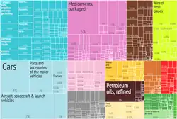 | Produtos exportados | máquinas e equipamentos de transporte, aviões, plásticos, produtos químicos, fármacos, ferro e aço, bebidas |