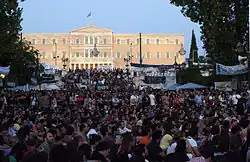 Em 5 de maio de 2010, a Grécia foi paralisada por uma greve geral, em protesto contra as medidas de austeridade que o governo pretende aprovar para ter acesso ao empréstimo da União Europeia e do Fundo Monetário Internacional. Em Atenas, houve confrontos entre manifestantes e policiais e pelo menos três pessoas morreram durante um incêndio provocado por um coquetel molotov elançado contra uma agência bancária. Dois prédios públicos também foram incendiados. Milhões de trabalhadores participam da greve, convocada pelas duas maiores centrais sindicais da Grécia, a GSEE, que representa trabalhadores do setor privado, e a ADEDY, do setor público, os manifestantes tentaram invadir o Parlamento. Também houve confrontos entre manifestantes e a polícia em Tessalônica, no norte do país. A polícia antimotim respondeu com gás lacrimogêneo e bombas de efeito moral.[39]