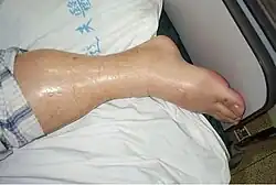 | Causas | Insuficiência venosa, insuficiência cardíaca, insuficiência renal, baixa concentração de albumina, doenças do fígado, trombose venosa profunda, linfedema[1][2] |