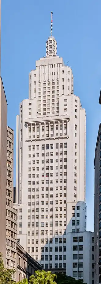 Construído a partir de 1939 pelo interventor federal Ademar Pereira de Barros para sediar o Banco do Estado de São Paulo (que ocupou o prédio até 2001[3]) e inaugurado oito anos depois, em 27 de junho de 1947, também por Ademar de Barros, quando ele já era governador de São Paulo, foi durante mais de uma década o mais alto da cidade, até ser superado pelo Mirante do Vale, em 1960.[4]