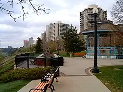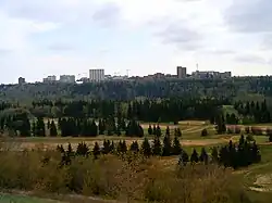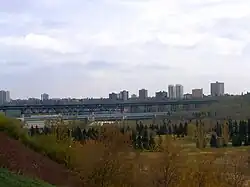 Vista do centro-oeste da cidade, à beira do vale do Rio North Saskatchewan.