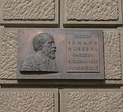Placa comemorativa dedicada a Husserl em Prostějov, sua cidade natal, localizada na Chéquia.