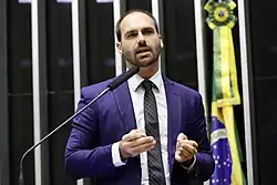 «Nos EUA, Eduardo Bolsonaro estreita laços com a extrema-direita». Estado de Minas. 16 de março de 2020. Consultado em 19 de março de 2025 - ↑ «Filhos e netos de políticos tradicionais se elegem deputados». R7.